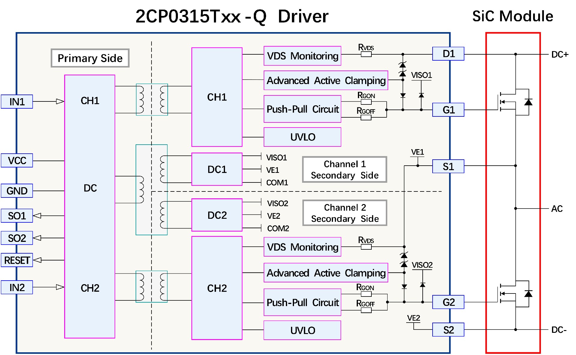 Dual-channel SiC MOSFET gate driver core |