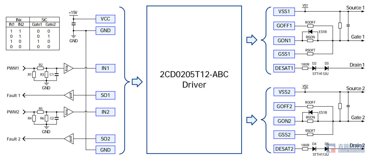 針對碳化硅功率器件的市場需求,青銅劍技術基于光耦隔離驅動方案,設計了一款雙通道、緊湊型驅動核2CD0205T12-ABC,可應用于空間有限、中低壓和高可靠性領域。