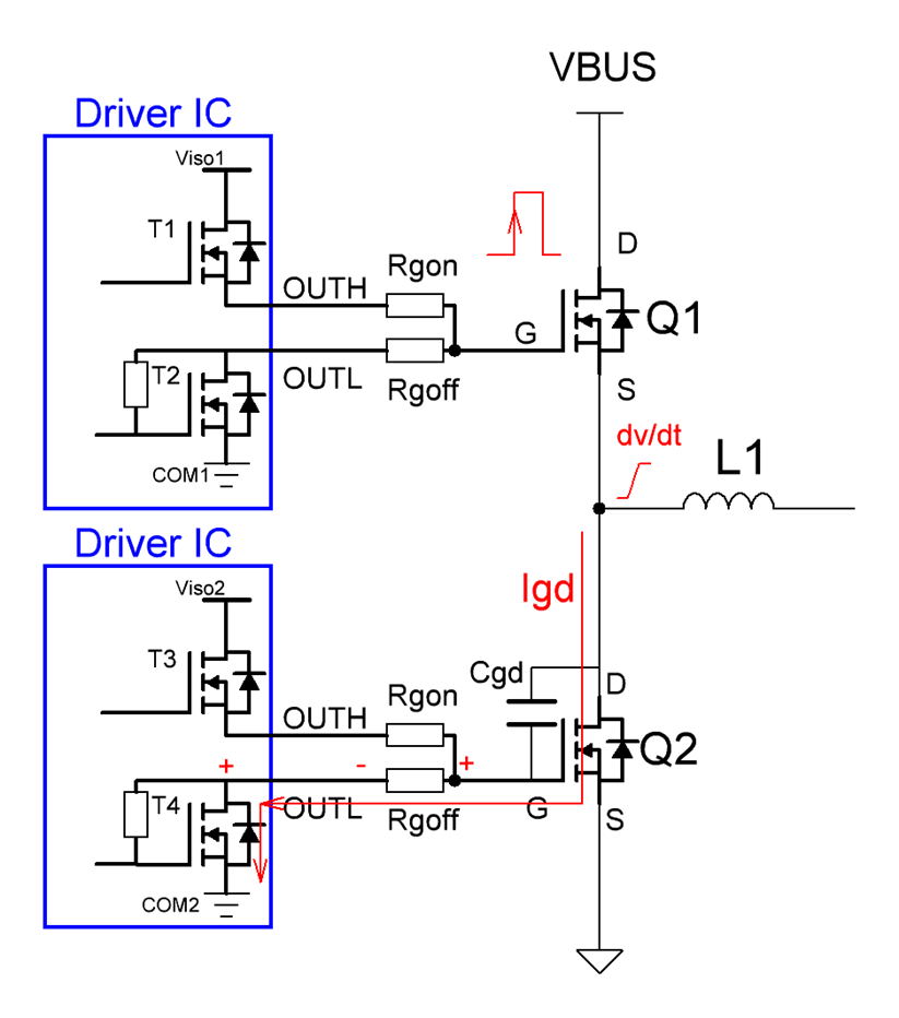 Vgs_crosstalk = i_miller * (Rg_ext + R_driver + Rg_int) 。