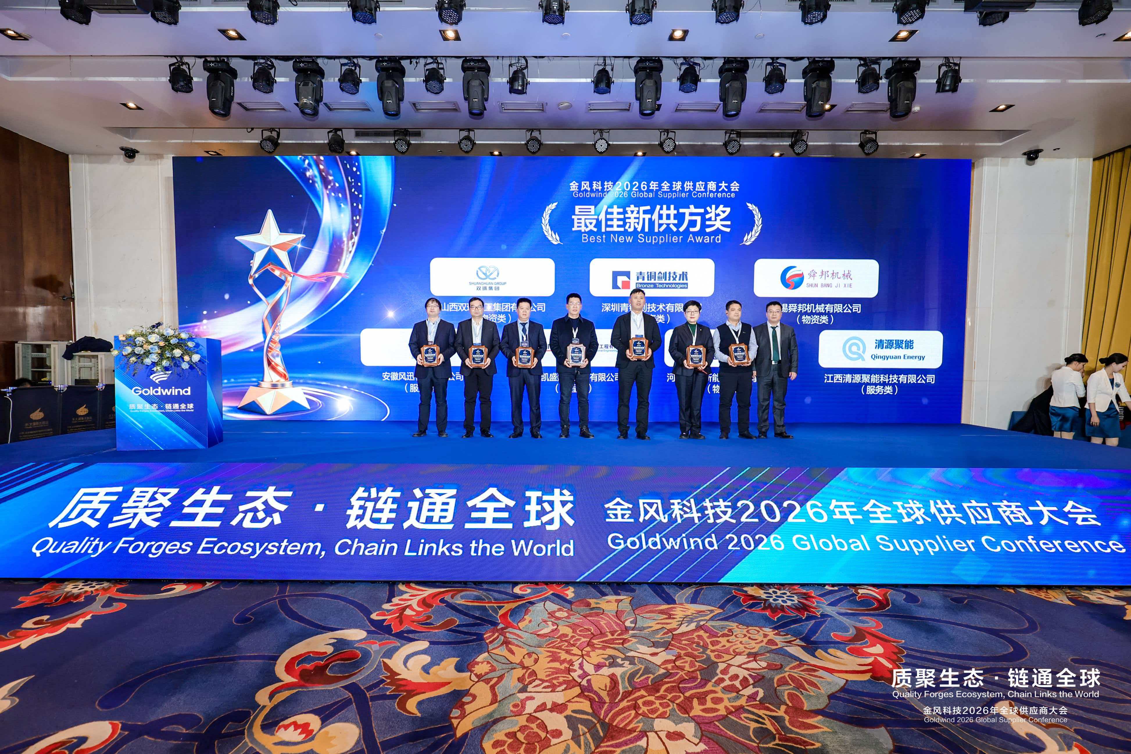 2月2日,金風科技2026年全球供應商大會在北京舉行。青銅劍技術憑借卓越的技術創新能力、穩定可靠的產品質量以及高效專業的客戶服務,從眾多供應商中脫穎而出,榮獲金風科技“最佳新供方獎”。公司總經理傅俊寅受邀出席大會并代表公司領獎。