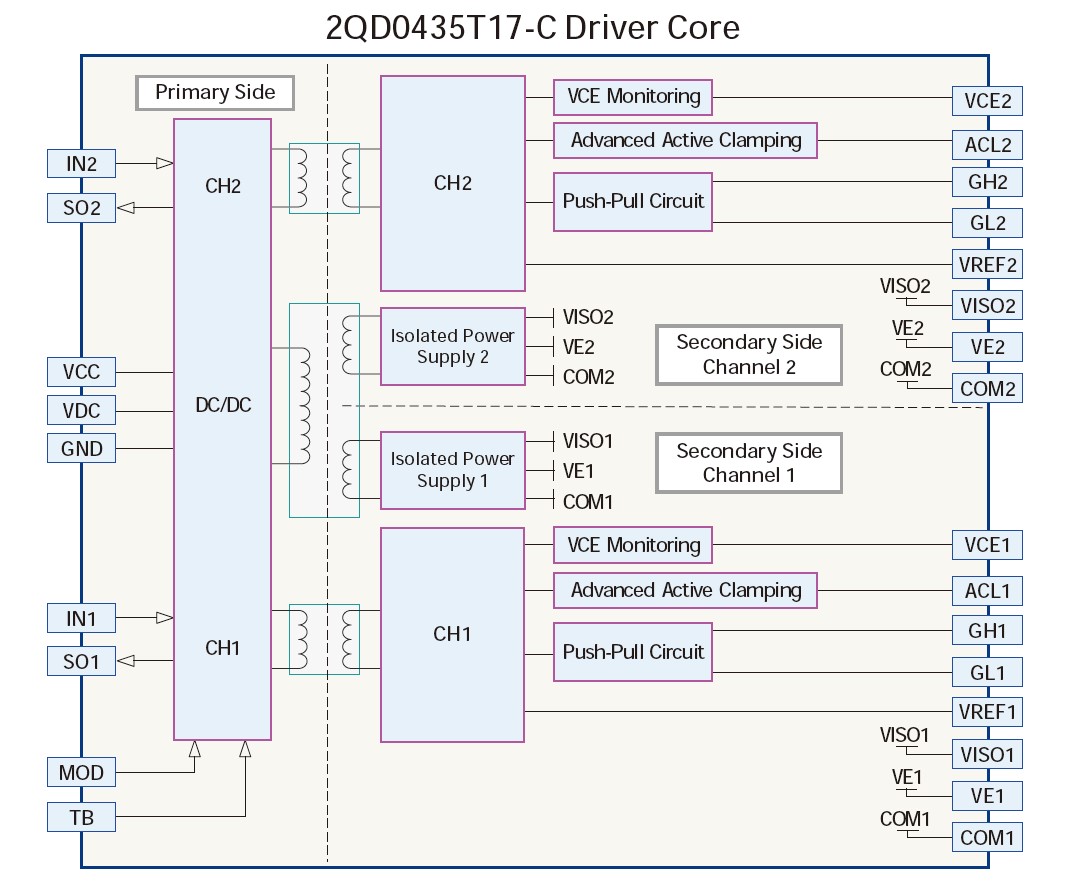 2QD0435T17-C是一款雙通道緊湊型高功率驅動核,基于青銅劍開發的第二代ASIC芯片組,用于高可靠性應用。