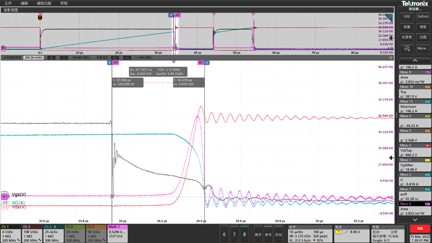 眾所周知,碳化硅功率器件具有開關頻率高的特點,開關頻率高會導致電流變化更快。電感的特性是阻礙電流的變化,電流變化越快,其阻礙效果越強。通過公式UL=-L*di/dt可以推出,雜散電感過高對功率器件運行最主要的影響是會導致Vds峰值過高以及電壓電流更長更劇烈的拖尾震蕩。前者主要影響設計余量,增加過壓擊穿風險。后者將增加電磁干擾,對損耗及損耗計算造成影響。